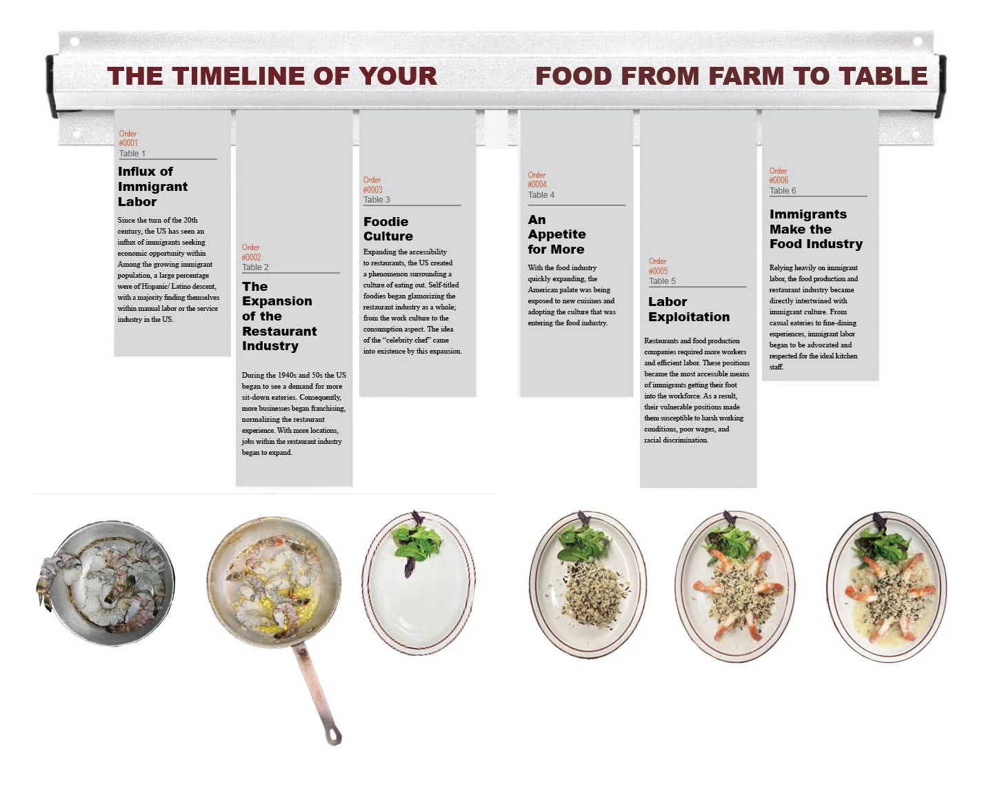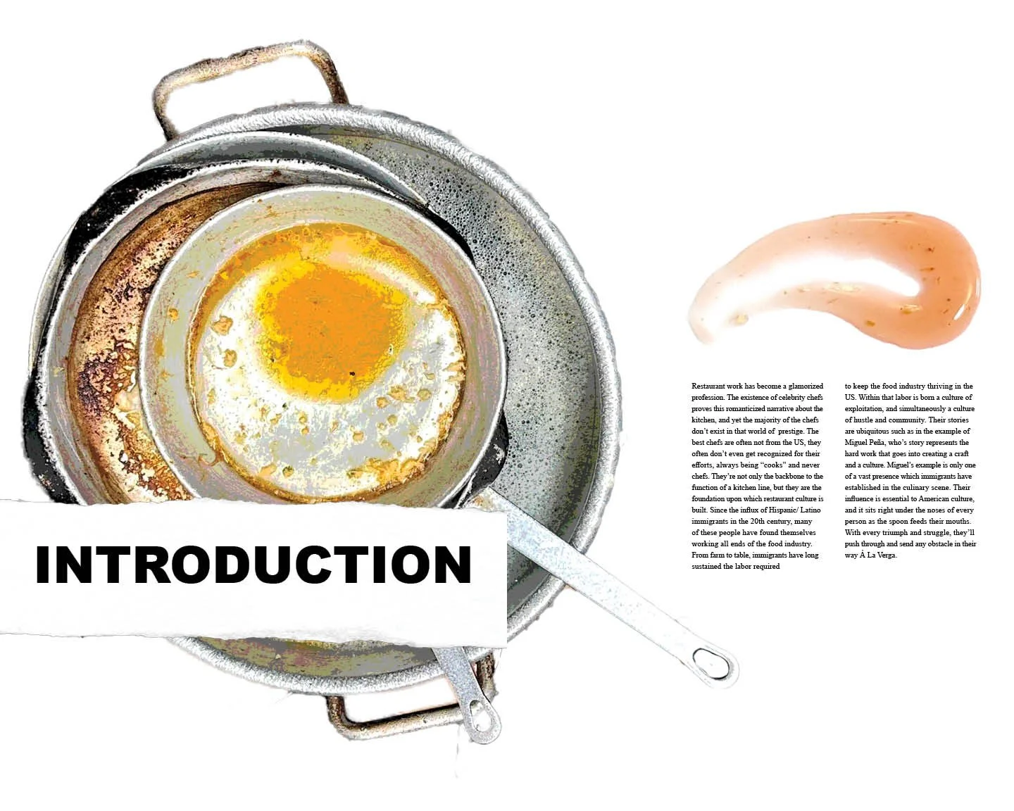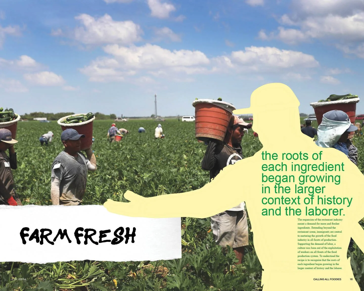 A La Verga is a play on the term “a la carte” which refers to the process of ordering single dishes at a restaurant as opposed to a set menu, as this editorial does; A La Verga is an editorial identifying the individual hands that make the food you consume from farm to table. The vulgar title pays homage to the crude language that is often spoken in a kitchen setting and moreover, in a language that is spoken by the overwhelmingly Latino immigrant populations which dominate the culinary scene in the US. This editorial takes you through this journey with a special highlight on chef Miguel Pena who has been head chef at Spikes Fish Market in Point Pleasant, NJ for over 20 years. The content was mainly sourced through a series of self-documented site visits in addition to verified library and database research. The culmination of these individual stories and collective statistics makes for an eye-opening understanding of the food industry that makes you say, “a la verga!”