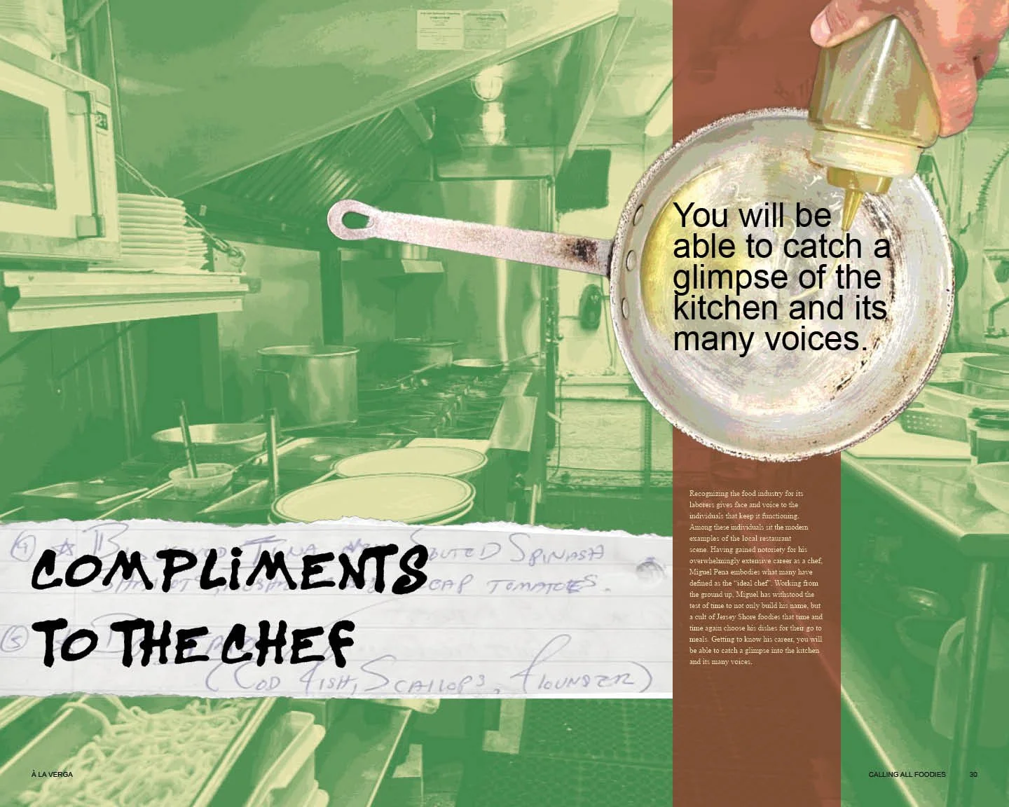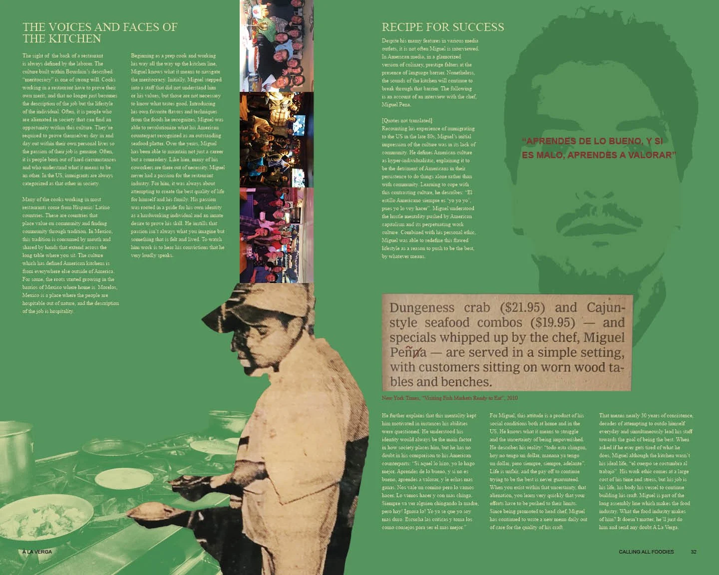 A La Verga is a play on the term “a la carte” which refers to the process of ordering single dishes at a restaurant as opposed to a set menu, as this editorial does; A La Verga is an editorial identifying the individual hands that make the food you consume from farm to table. The vulgar title pays homage to the crude language that is often spoken in a kitchen setting and moreover, in a language that is spoken by the overwhelmingly Latino immigrant populations which dominate the culinary scene in the US. This editorial takes you through this journey with a special highlight on chef Miguel Pena who has been head chef at Spikes Fish Market in Point Pleasant, NJ for over 20 years. The content was mainly sourced through a series of self-documented site visits in addition to verified library and database research. The culmination of these individual stories and collective statistics makes for an eye-opening understanding of the food industry that makes you say, “a la verga!”. All editorial spreads are created using Adobe InDesign.